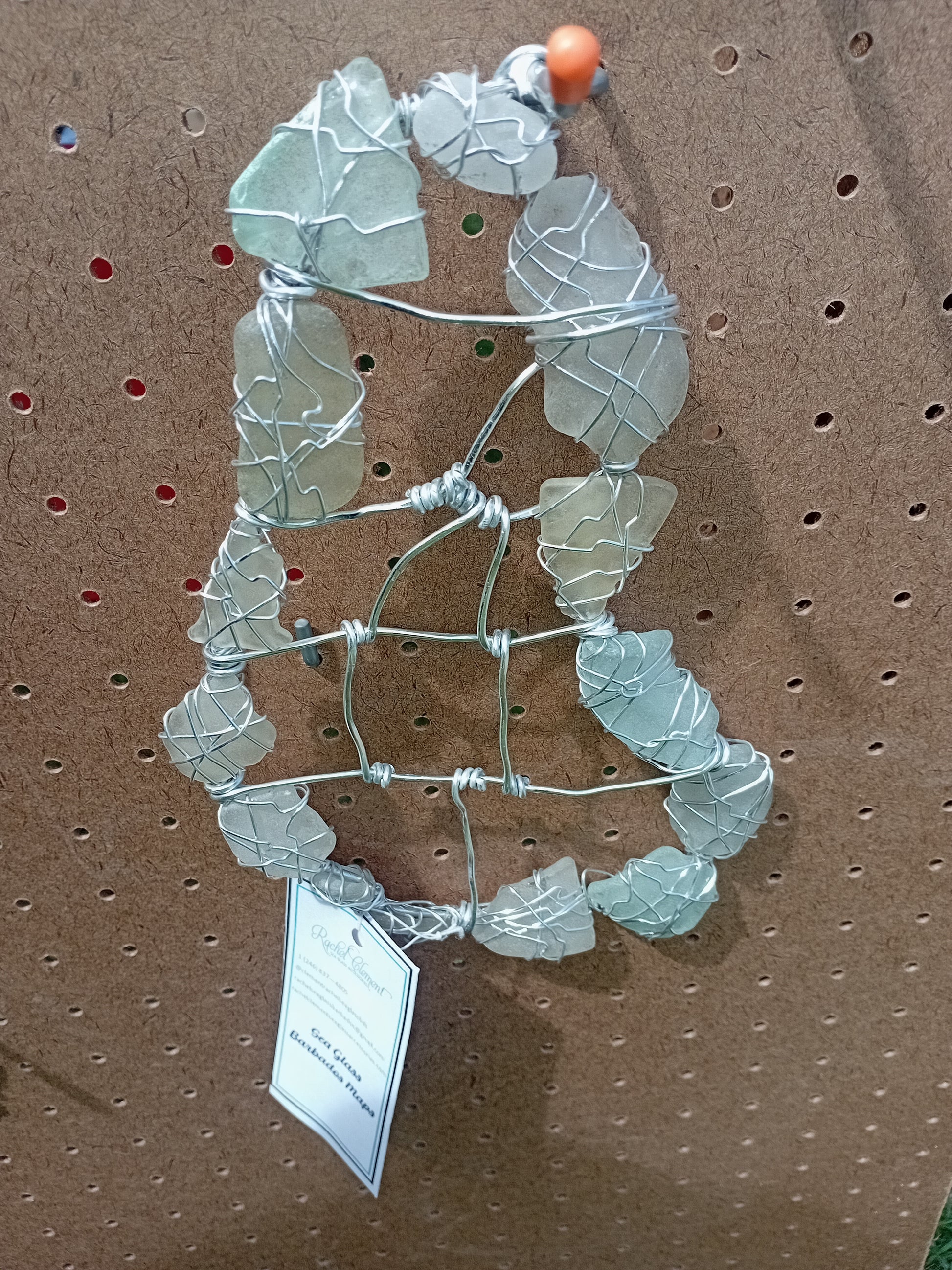 with this unique art piece from the Pride of Barbados Collection. Each wire-wrapped sea glass iqs placed together representin0g the 11 parishes of Barbados, creating a stunning map ofe the island. Created by NIFCA Award winner Rachel Clement-Scott, this piece is a true expression of Barbadian pride. Each piece is one-of-a-kind, making it a truly unique addition to any home decor.